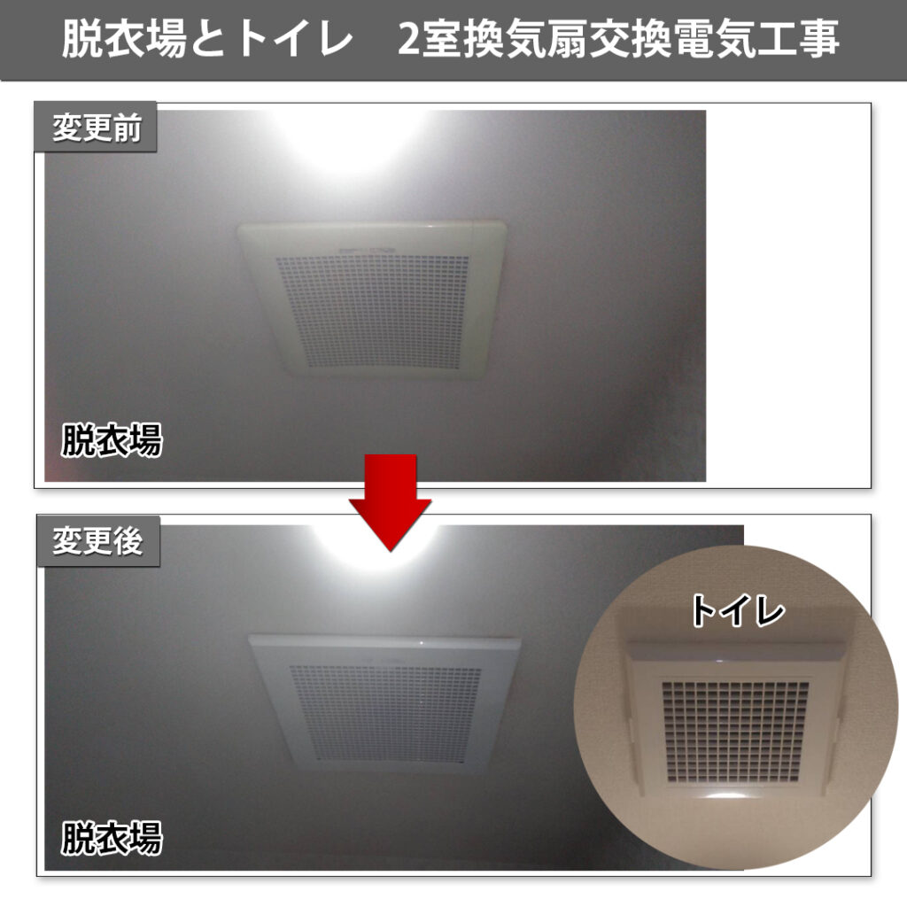 長年ご使用になった脱衣場とトイレの換気扇の交換工事です。