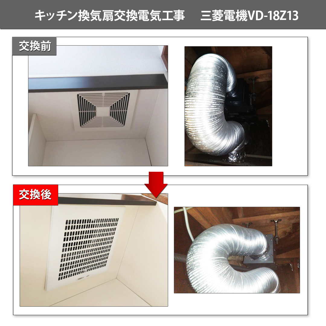 今回はキッチンの換気扇交換電気工事を行いました。